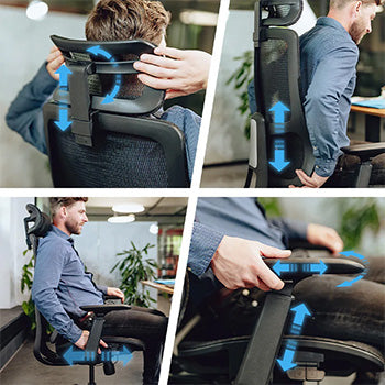 Bleibe durch die individuellen Anpassungsmöglichkeiten selbst an langen Arbeitstagen frei von Rücken- und Nackenbeschwerden und fokussiere dich auf was Dir wirklich wichtig ist. Tu deinem Rücken was Gutes, sitze Bequem und Arbeite konzentriert.