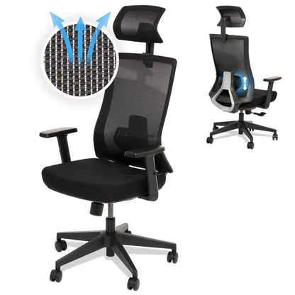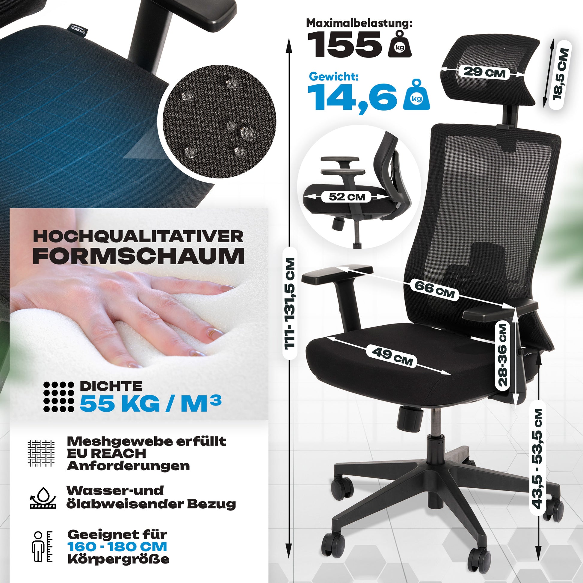 - Ergonomische Netzrückenlehne (90°–118° Neigung)